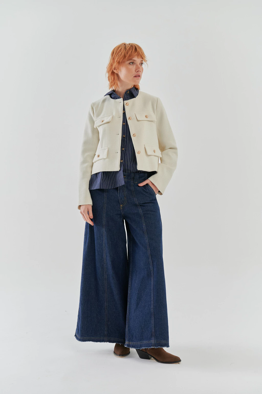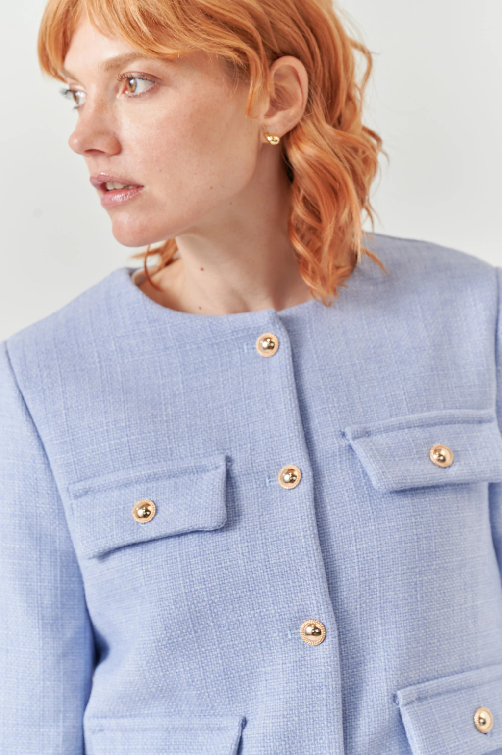 Descripción: La BLAZER COCO es la prenda perfecta para quienes buscan un toque de elegancia en su guardarropa. Con un diseño corto y sofisticado, este blazer cuenta con detalles de botones dorados y cuatro bolsillos que le aportan un estilo único.