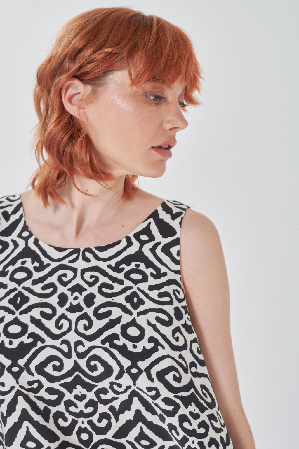 Blusa musculosa con diseño estampado, ideal para un look relajado y chic que se adapta a muchas ocasiones.