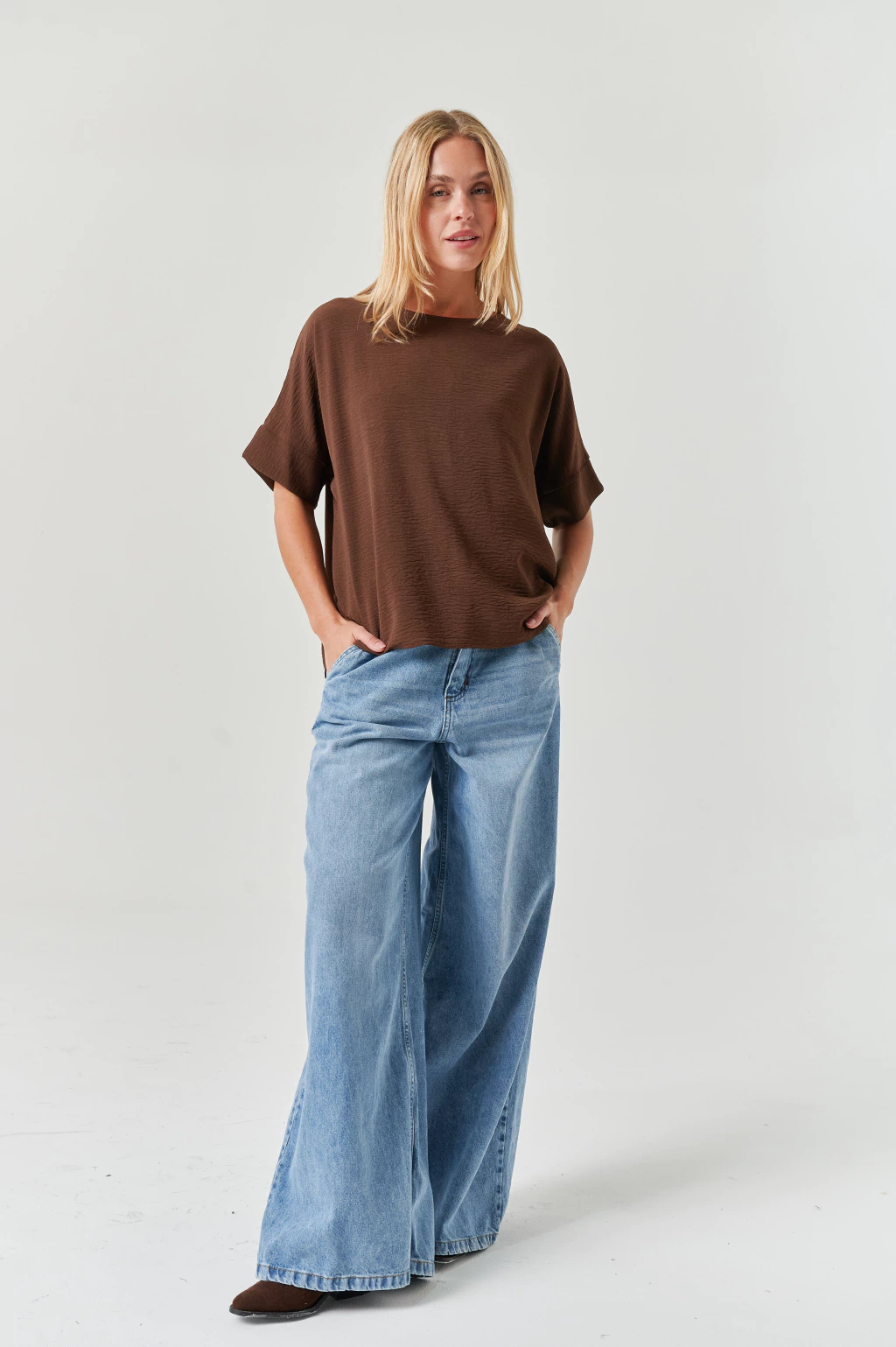 BLUSA PALERMO: La blusa de crepé básica que estabas esperando. Con un diseño único que presenta una elegante parte descubierta en la espalda, esta prenda es perfecta para quienes buscan un toque de sofisticación en su outfit diario.