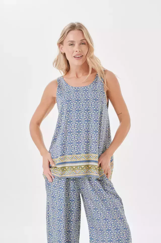 Blusa estampada con un delicado detalle de brillos en la parte inferior