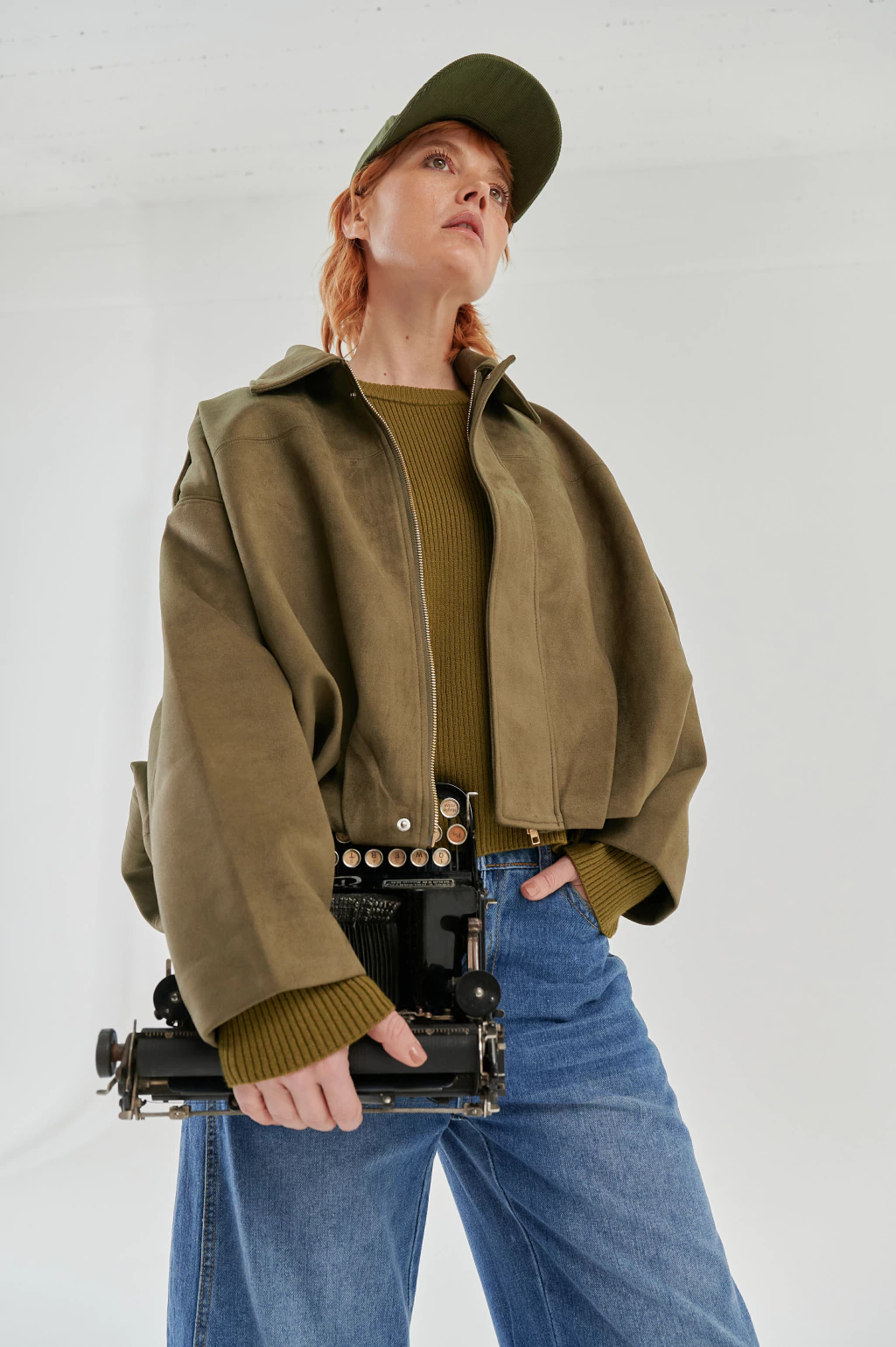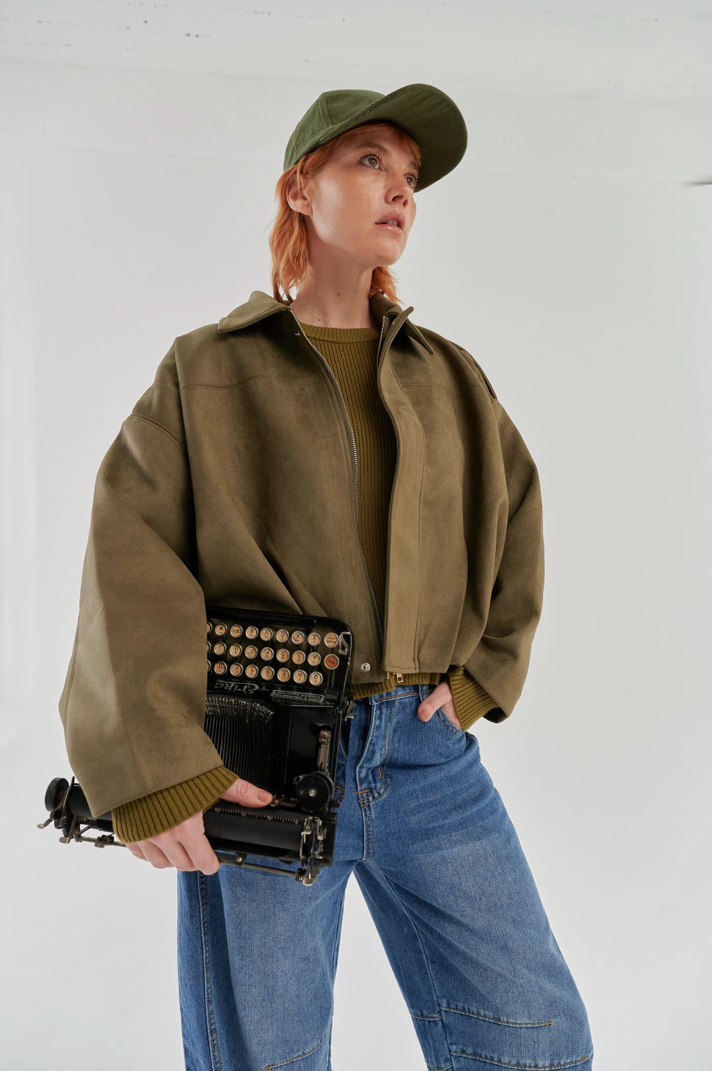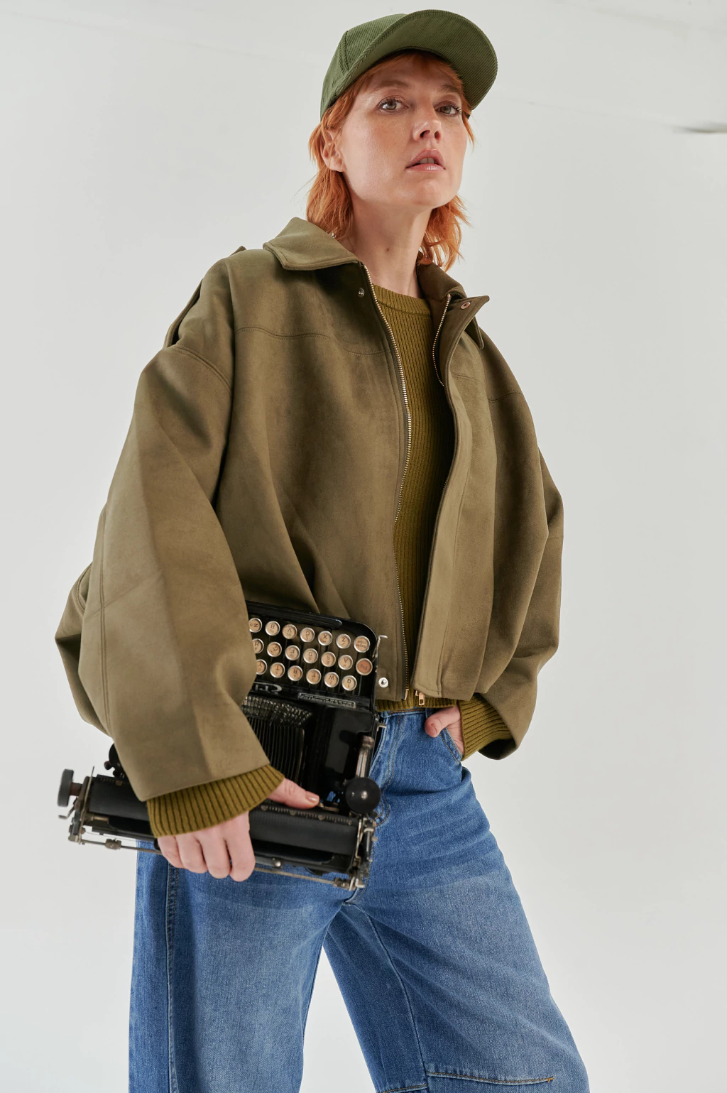 Descripción: La Bomber Ante es la campera bomber de gamuza que no puede faltar en tu guardarropa. Con un estilo oversize y una apariencia muy canchera, es perfecta para dar un toque moderno a tus outfits.