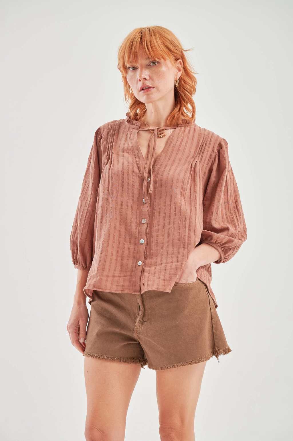 Camisa New Mushka, una prenda esencial para tu guardarropa. Confeccionada en lino liviano y mangas 3/4, ofrece comodidad y frescura todo el día.