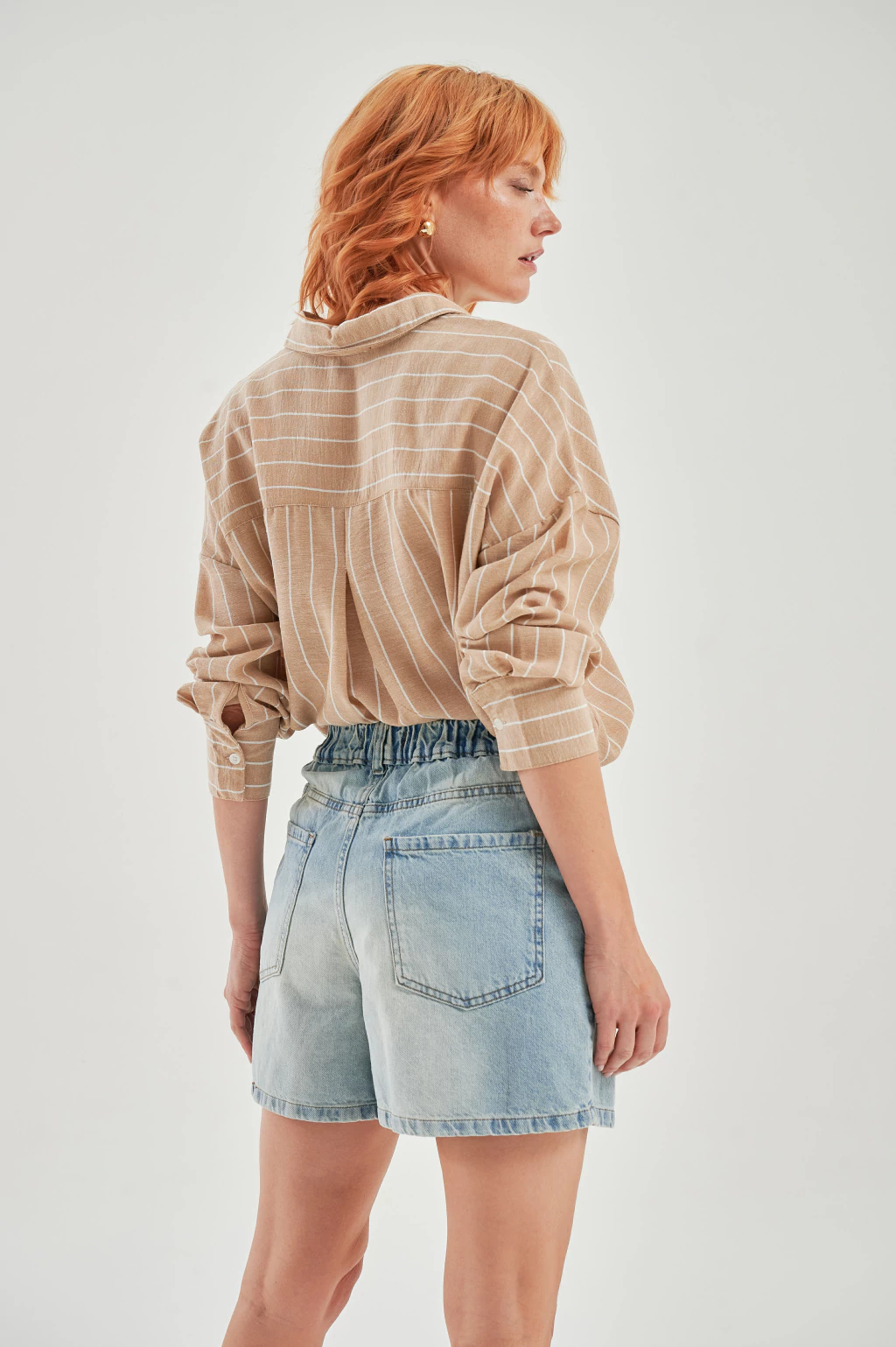 CAMISA RODEO OFFICE Elegí la camisa ideal para un look sofisticado y cómodo. Nuestra CAMISA SIMIL LINO MANGAS LARGAS RAYADA ofrece un diseño fresco y versátil, perfecto para la oficina o salidas informales. Confeccionada en tela similar al lino, garantiza suavidad y frescura durante todo el día. Disponible en talles variados para un calce perfecto. Ideal para quienes buscan elegancia sin perder comodidad. ¡Sumala a tu guardarropa y sentite divina!