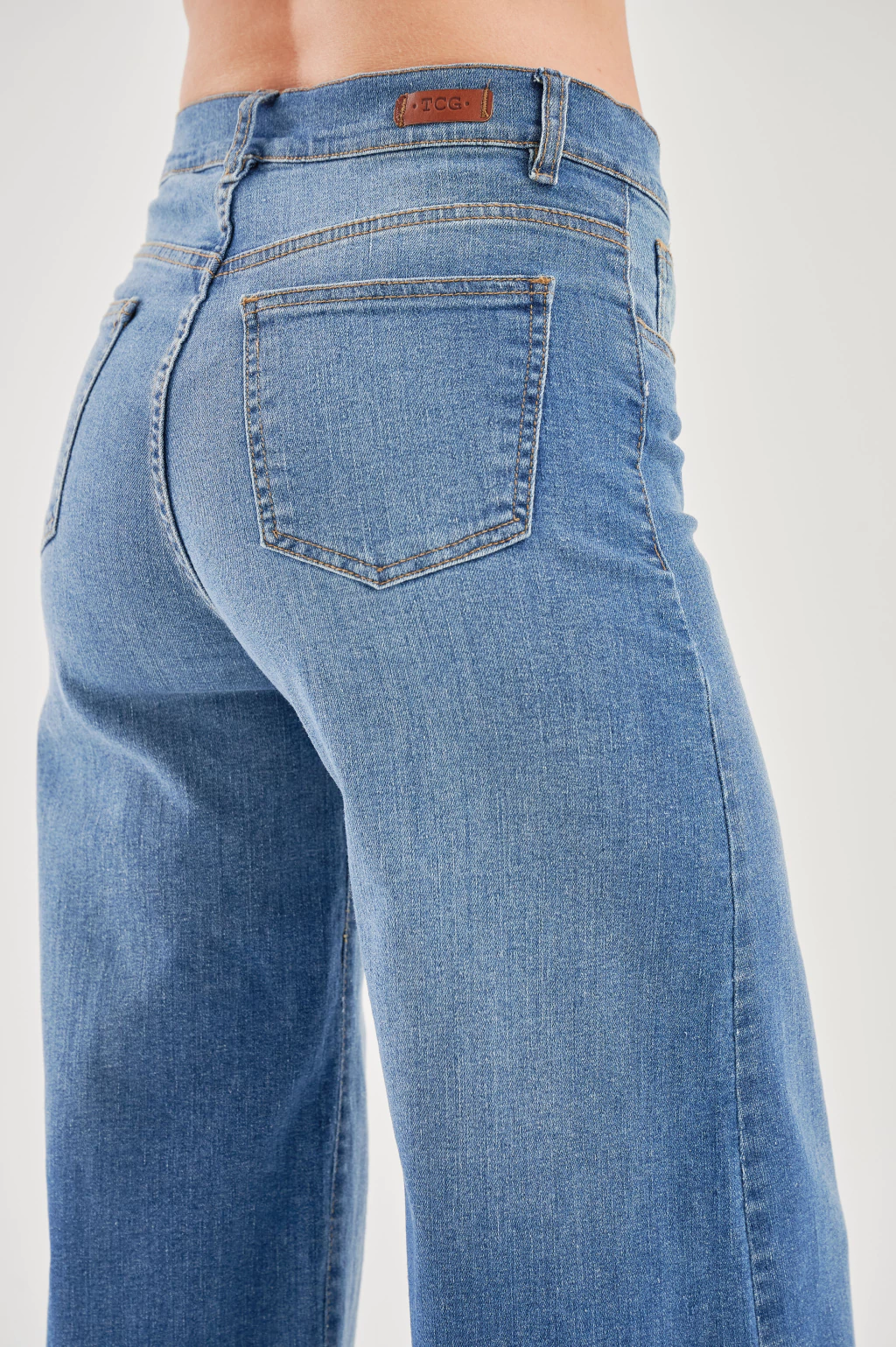 Jean Londres Coast, un modelo wid leg con tiro alto que combina estilo y comodidad. Gracias al elastano, ofrece una elasticidad que se adapta perfectamente al cuerpo, brindando libertad de movimiento.