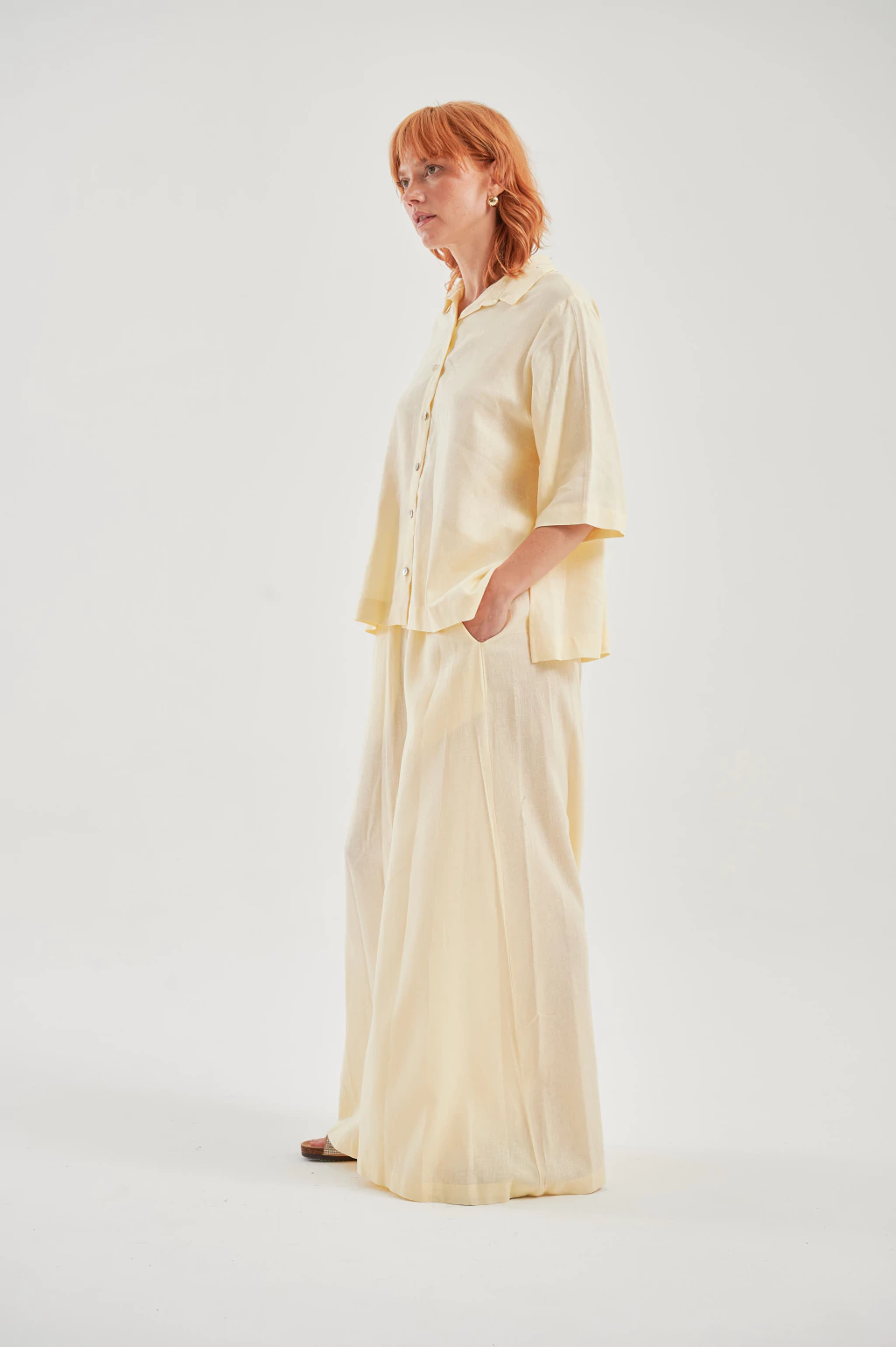 Descubrí el Maxi Palazzo Leblon, un pantalón palazzo confeccionado en lino liso con una tela super fresca que te acompañará en los días más cálidos.