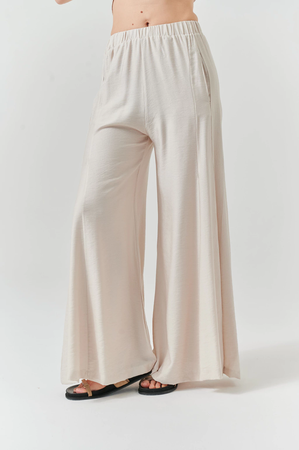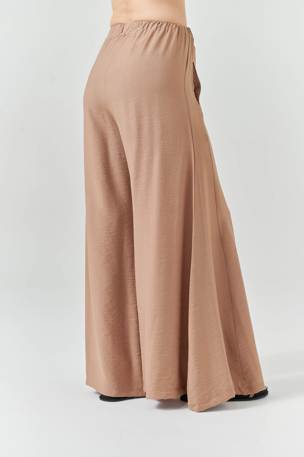 Pantalón Bell Madrid: la prenda ideal para un look fresco y sofisticado. Confeccionado en crepé super fresco, este pantalón palazzo de talle único amplio se adapta cómodamente a tu figura.