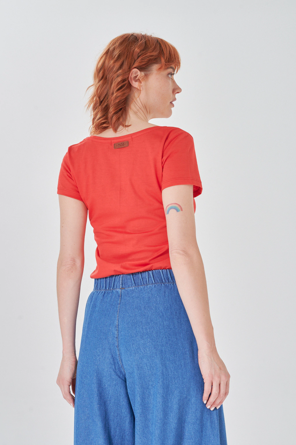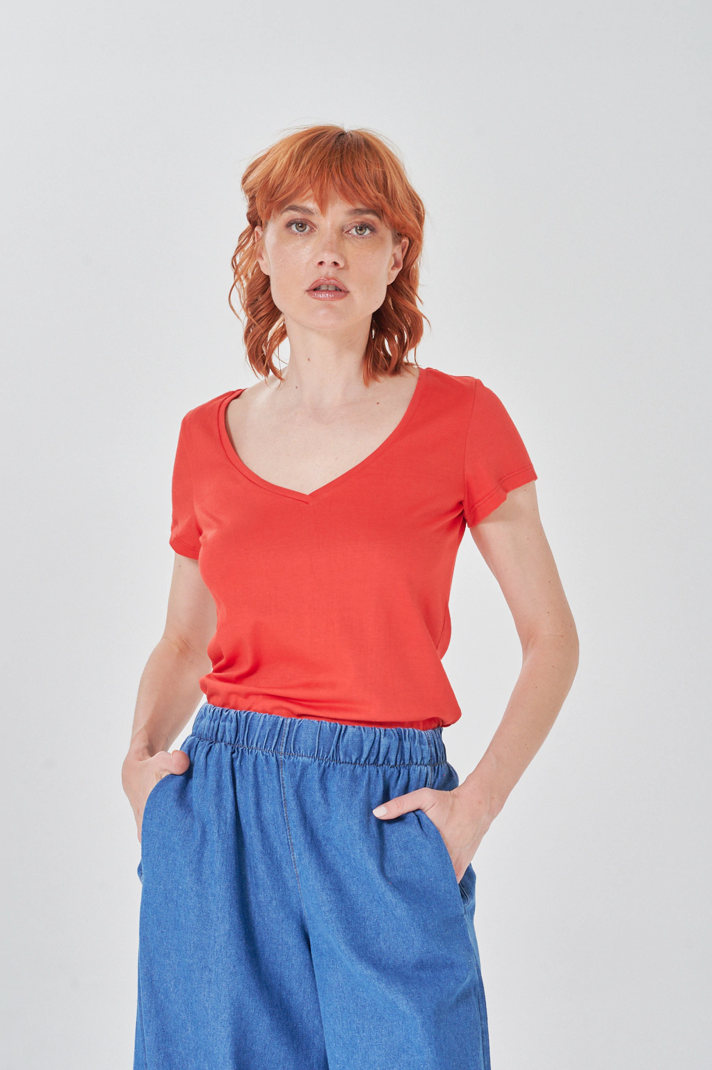 Descripción: R4114 Remera basica lisa perfecta para tu guardarropa, escote v perfecta para estilizar tu cuello y rostro, esta remera es ideal para un look casual y alegre y combinar con todo.