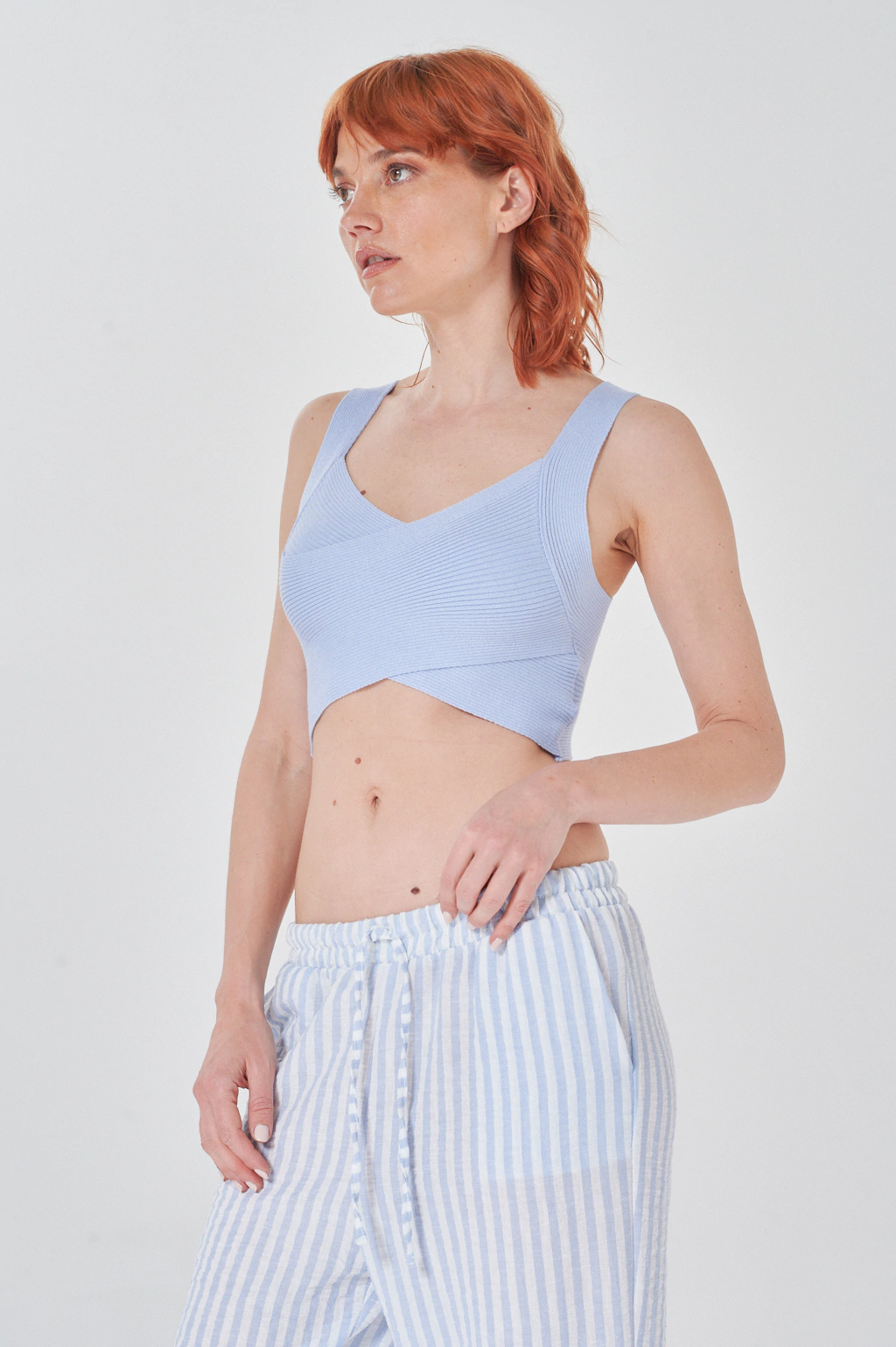 Descripción: M111 El Top Cruzado de Hilo de algodon, es la prenda perfecta para un look fresco y chic. El tejido de hilo lo convierte en una opción ideal para el verano.